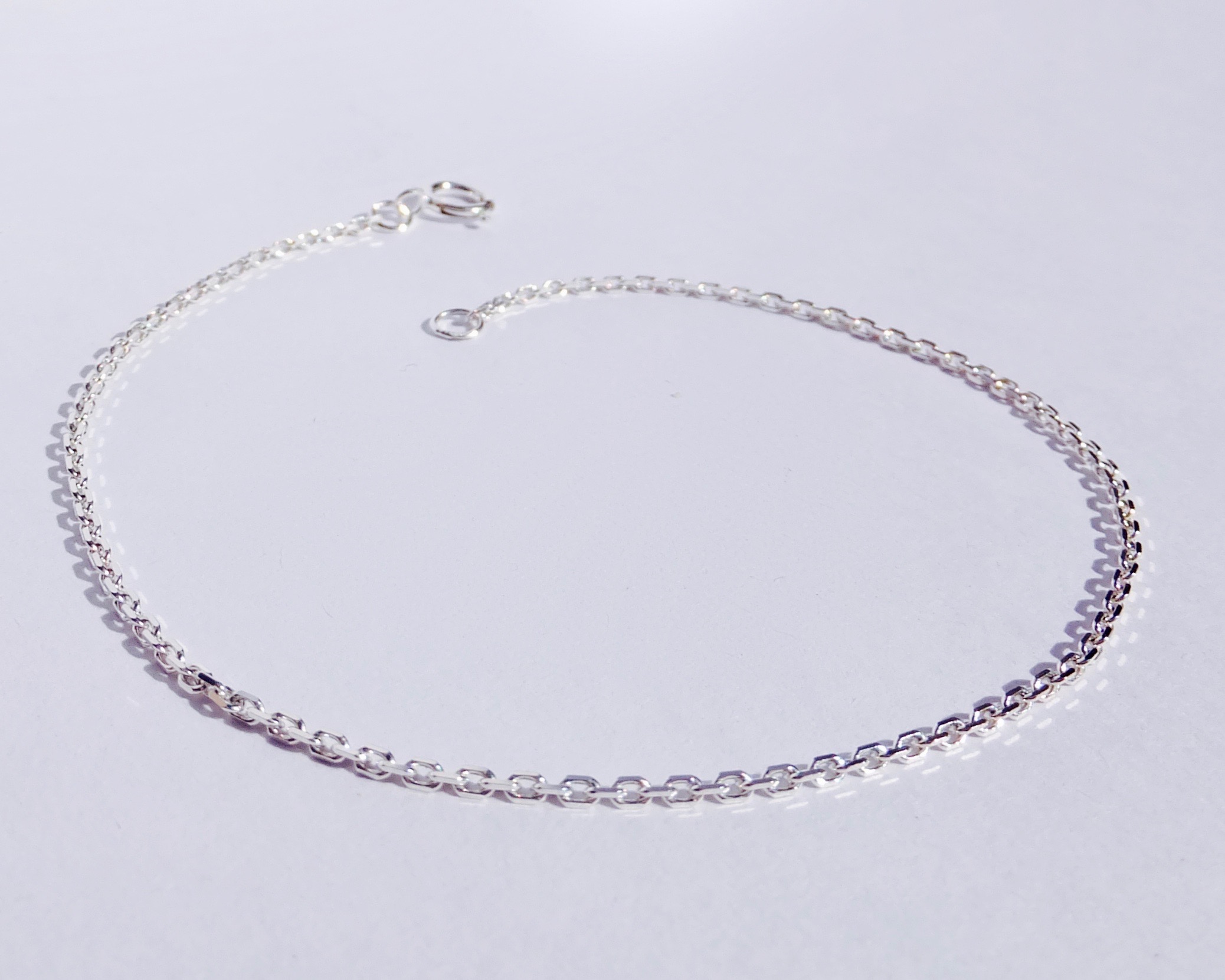 Stříbrný, tenký náramek, který tvoří drobné obdelníkové očka, která jsou jemně hranatá. Kroužkové zapínání.