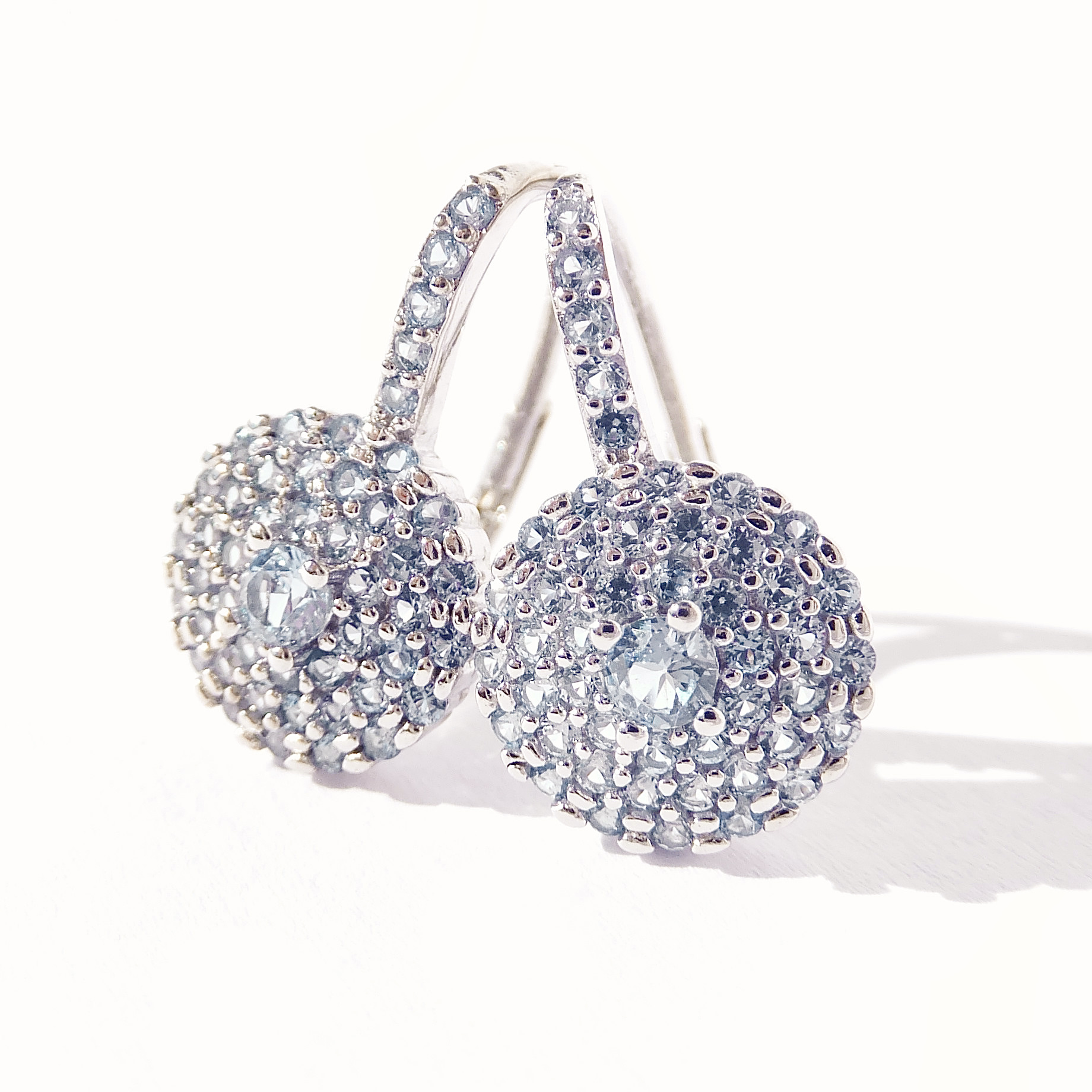 Dokonalé stříbrné náušnice se světle modrými kamínky, které se krásně třpytí. Pohodlné zapínání na patent-klapka.