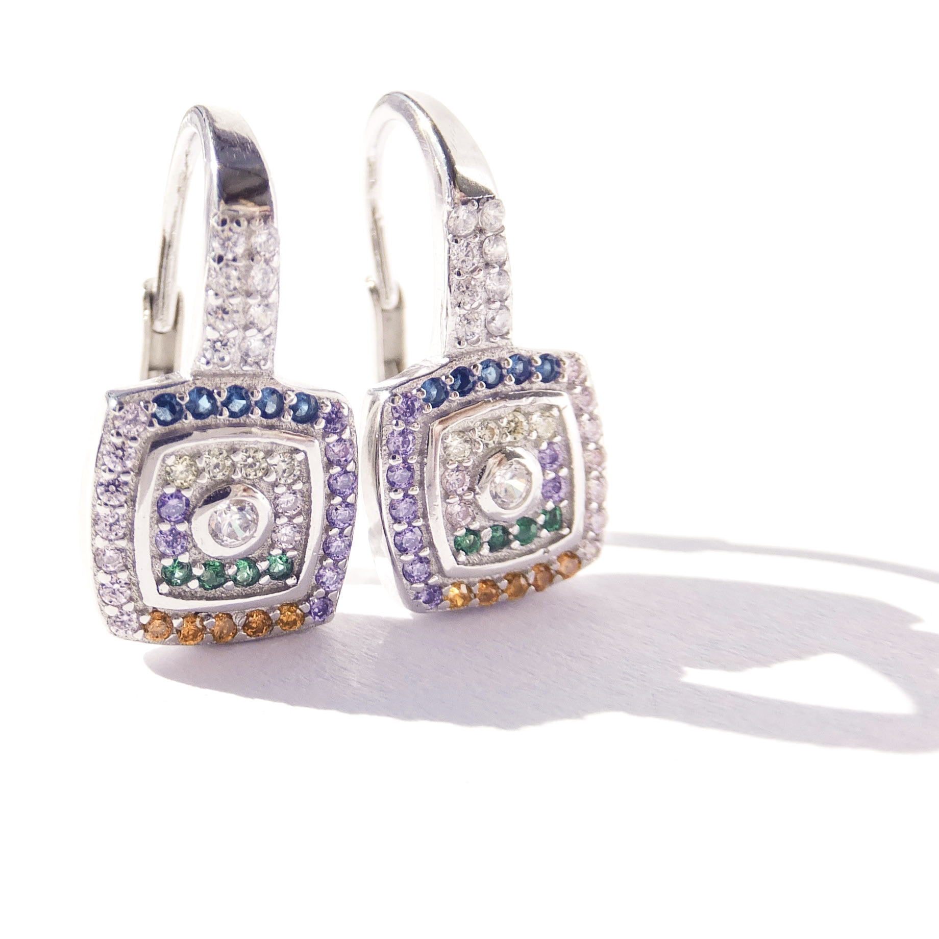 Stříbrné náušnice s barevnými kamínky. Pohodlné zapínání na patent-klapka.