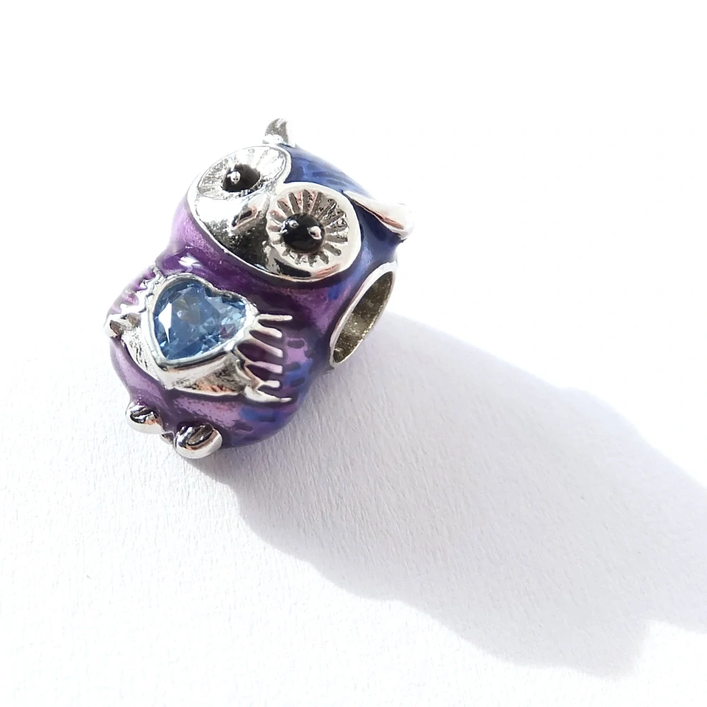 Stříbrný přívěsek na náramek v podobě sovičky.