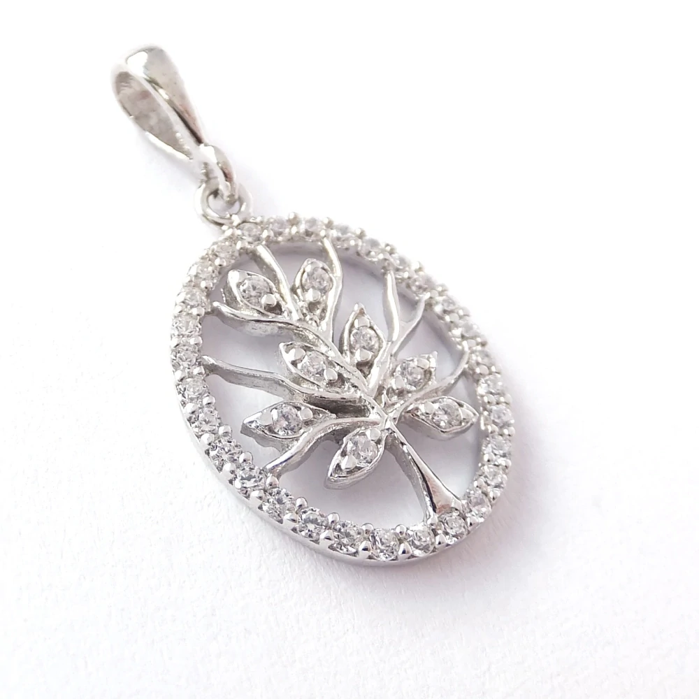 Stříbrný přívěsek strom života, který je dekorován čirými kamínky.