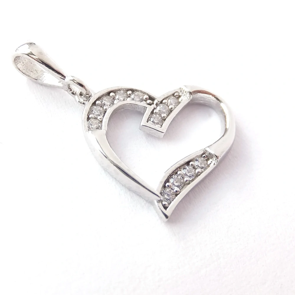 Stříbrný přívěsek ve tvaru srdce s čirými kamínky.