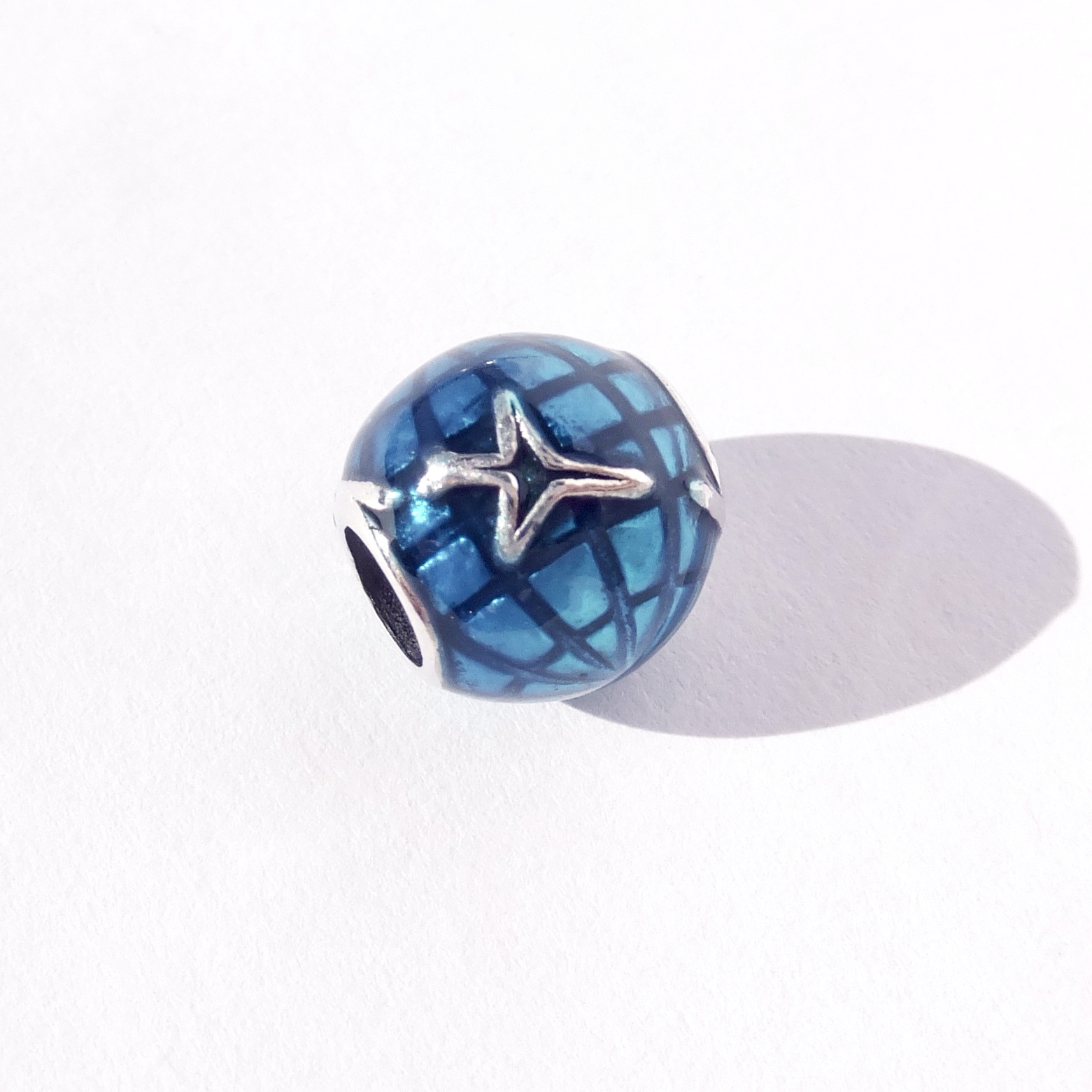 Modrý stříbrný přívěsek na náramek s letadlem. Ideální dárek pro cestovatele.