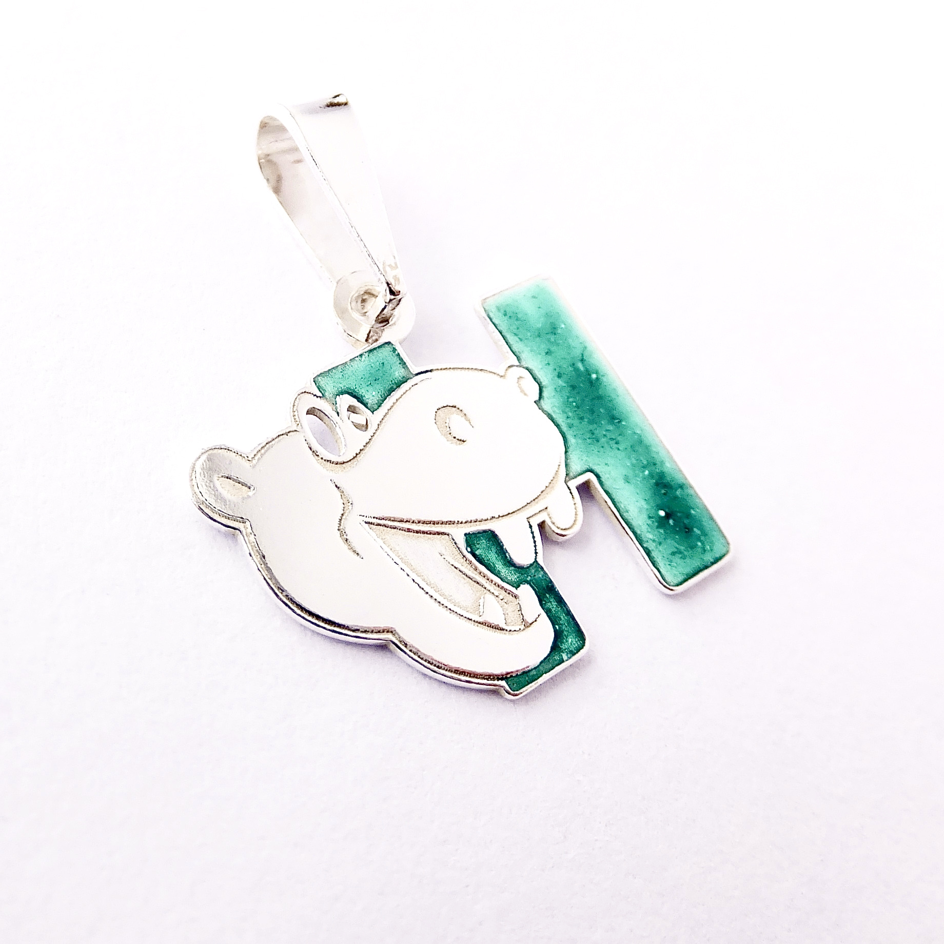 Stříbrný přívěsek písmeno H s roztomilým hrošíkem. Ideální jako dárek pro Vaše nejbližší.