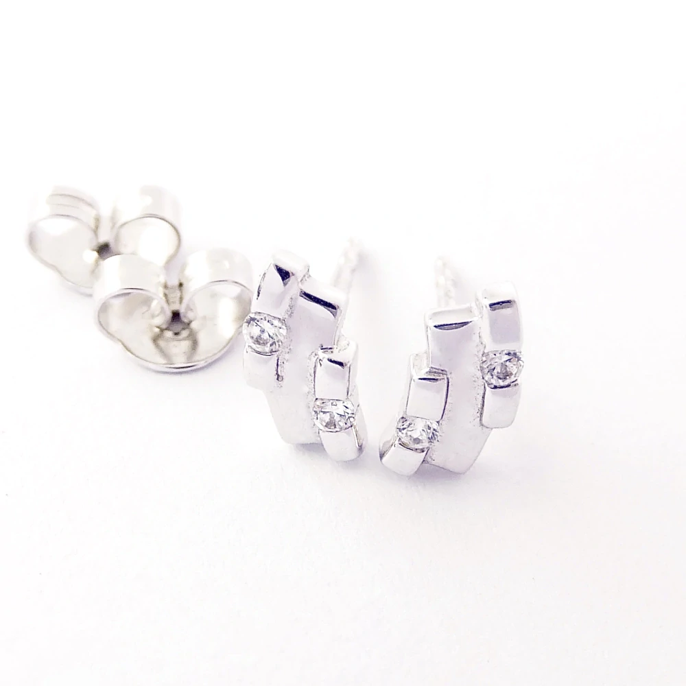 Drobnéí náušnice z bílého zlata zdobené čirými zirkony. Pohodlné zapínání na puzetu.
