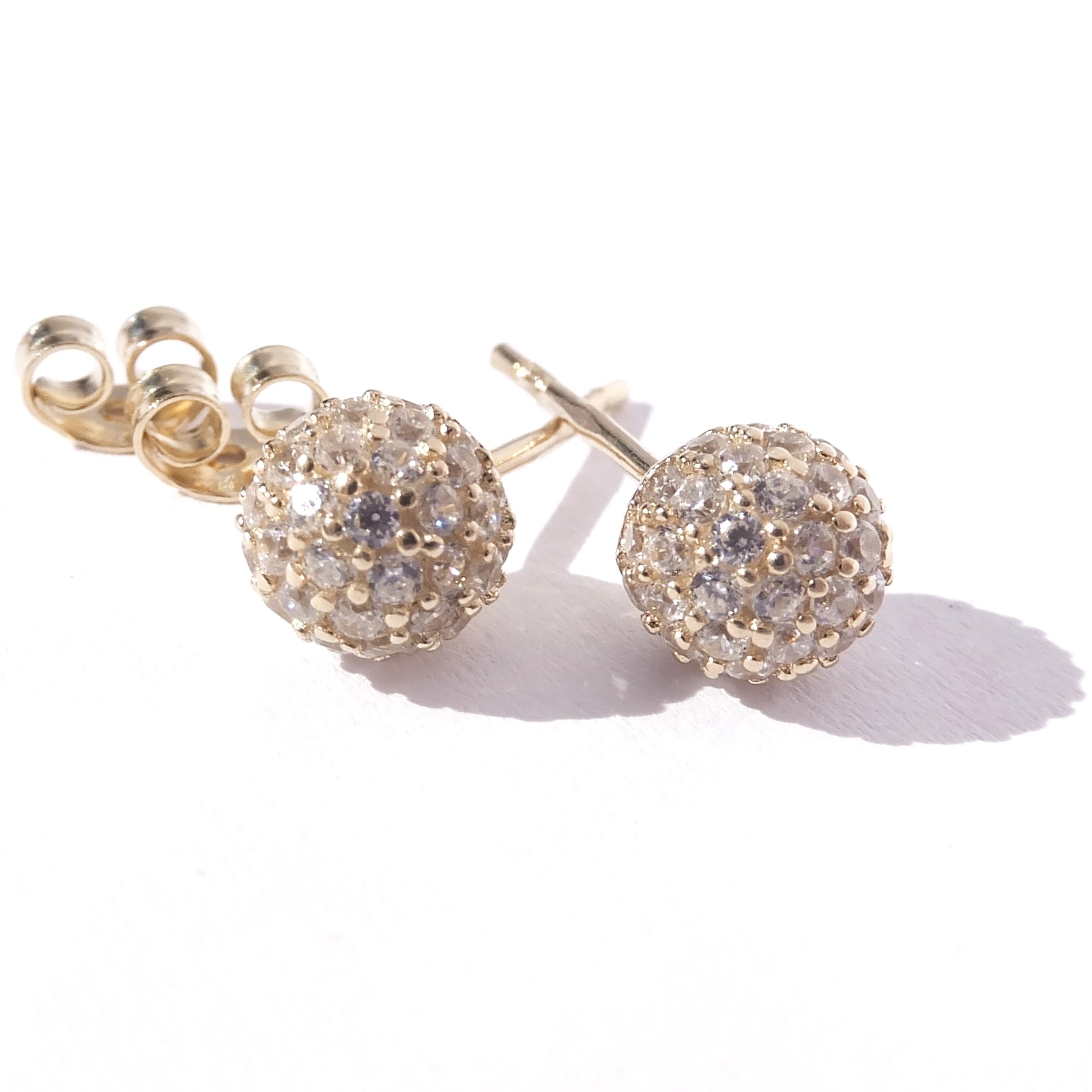 Elegantní zlaté náušnice se zirkony. Pohodlné zapínání na puzetu.