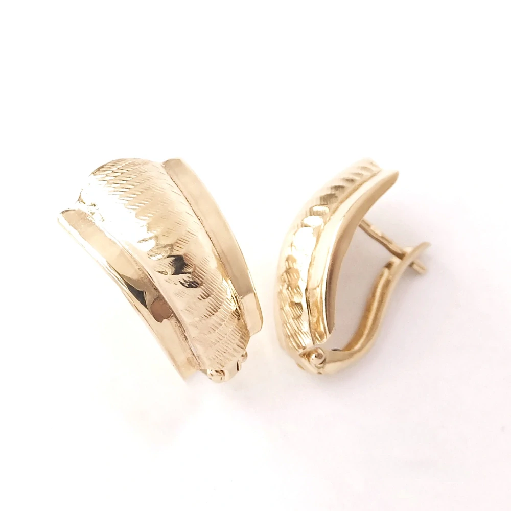 Elegantní zlaté náušnice s lesklou povrchovou úpravou. Francouzské zapínání.