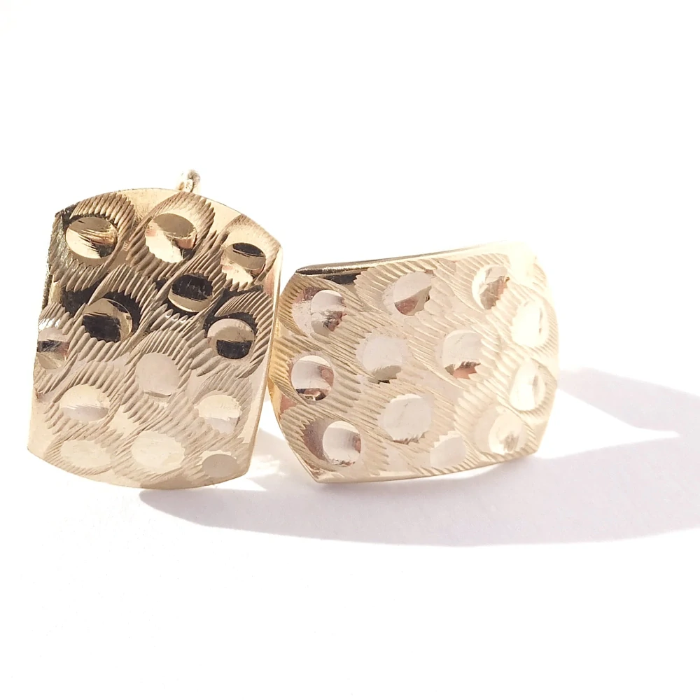 Elegantní zlaté náušnice, které se krásně třpytí. Pohodlné zapínání na patent-klapka. Náušnice mají jemně zaoblený tvar.