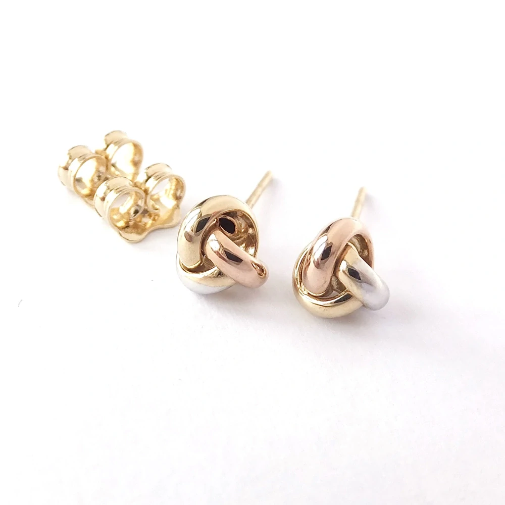 Okouzlující, drobné zlaté náušnice ve tvaru uzlíků. Lesklá povrchová úprava. Pohodlné zapínání na puzetu.