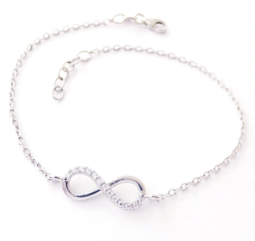 Délka náramku s přepínacími očky 17-18,5 cm, šířka 1 mm, délka přívěsku 1,5 cm, šířka 6 mm.