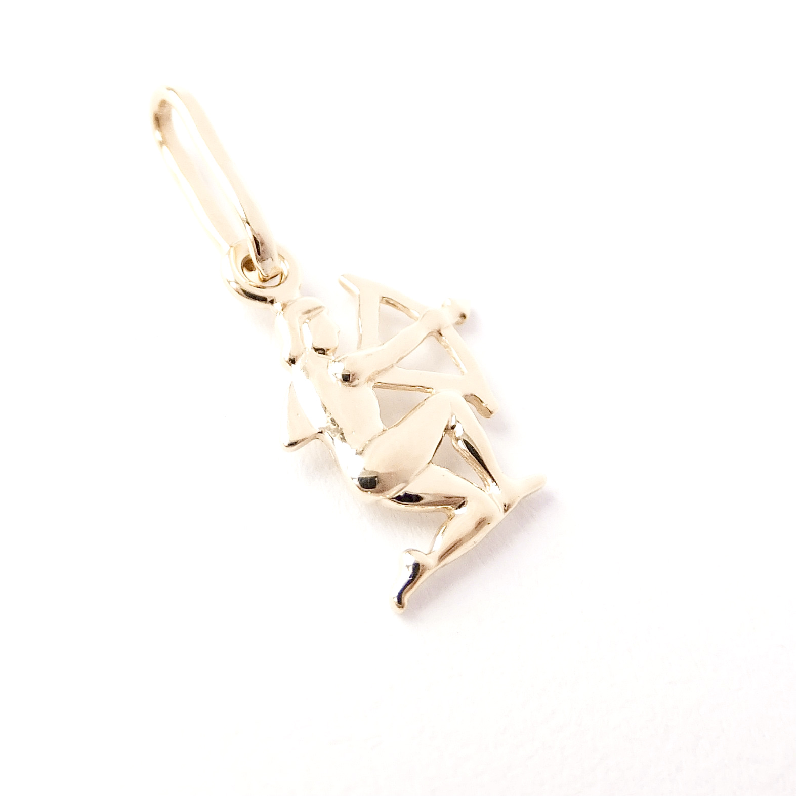 Drobný zlatý přívěsek znamení zvěrokruhu Střelec. Lesklá povrchová úprava.