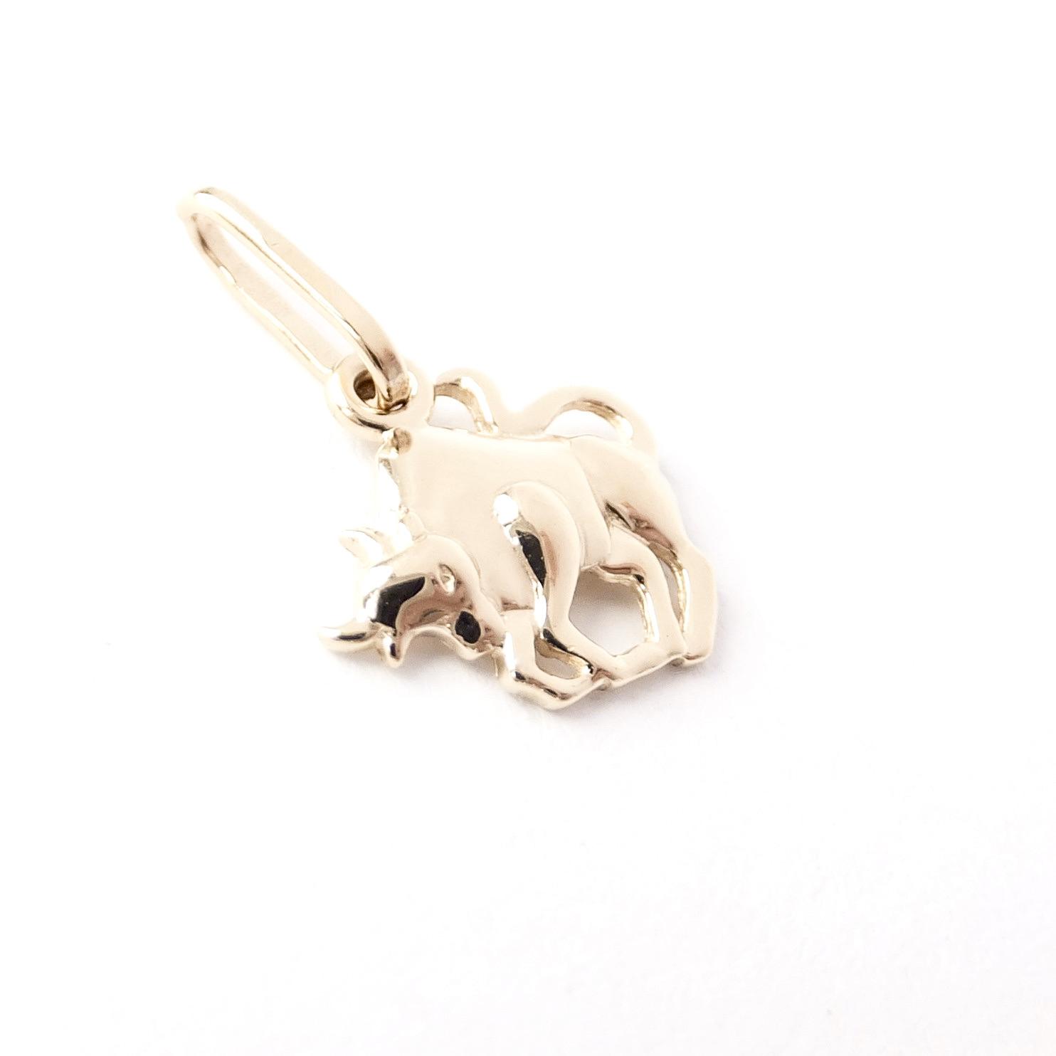 Drobný zlatý přívěsek znamení zvěrokruhu Býk. Lesklá povrchová úprava.
