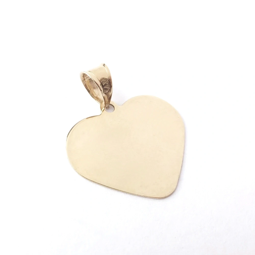 Zlatý přívěsek s lesklou povrchovou úpravou ve tvaru srdce. Možnost gravírování.