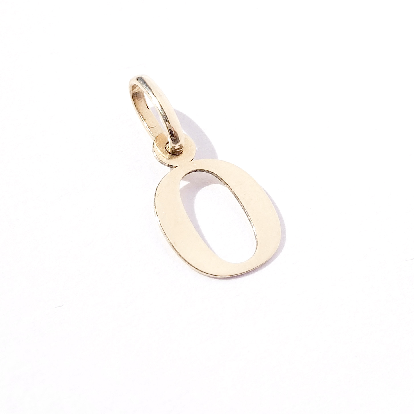 Drobný zlatý přívěsek ve tvaru písmene 0.
