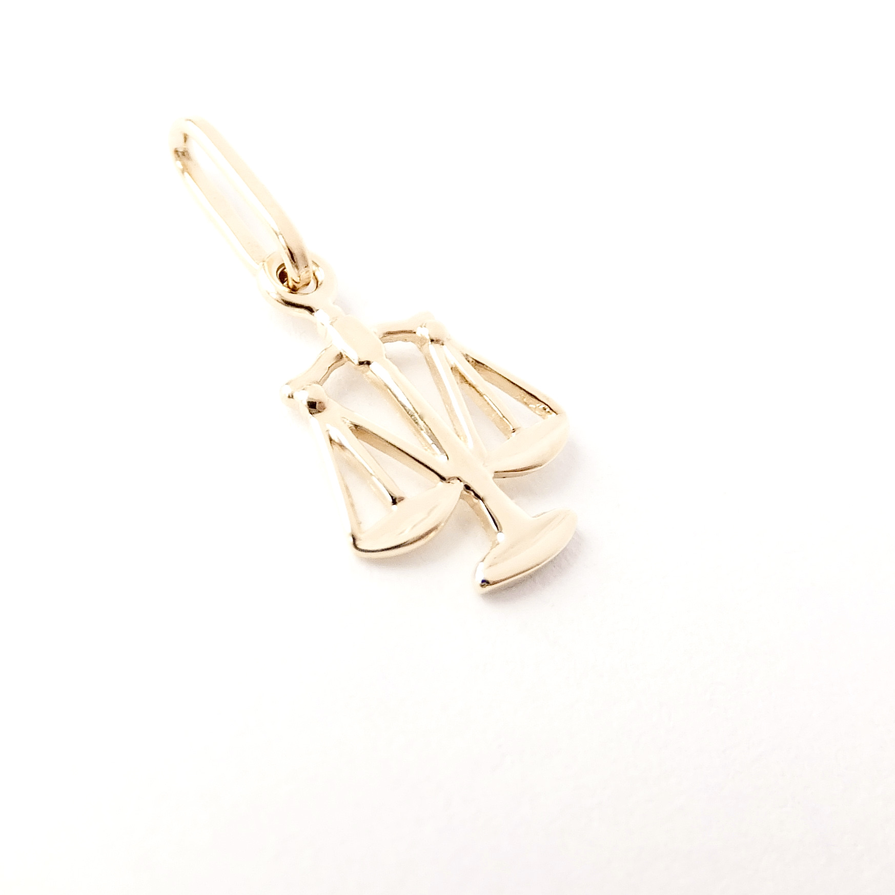 Drobný zlatý přívěsek znamení zvěrokruhu Váhy. Lesklá povrchová úprava.