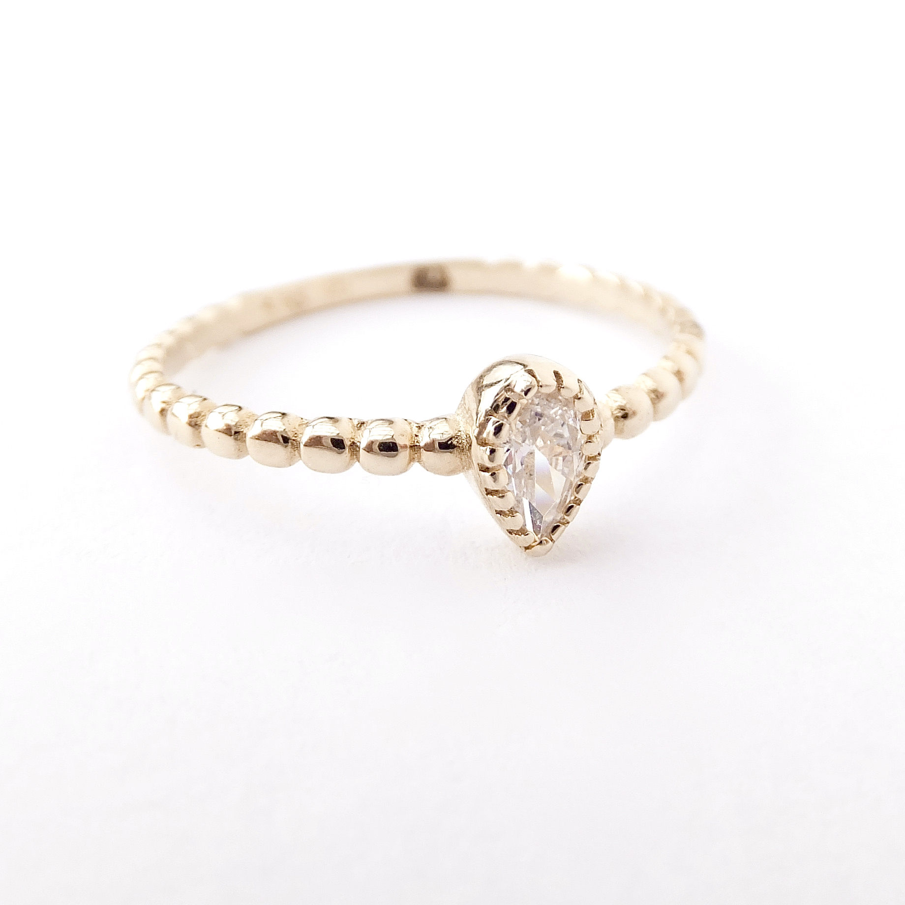 Stylový zlatý prsten s čirým kamenem.