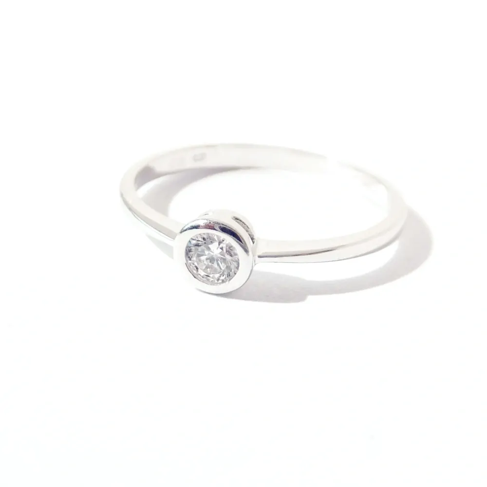 Nádherný prsten z bílého zlata, který je doplněný drobným, čirým zirkonem.