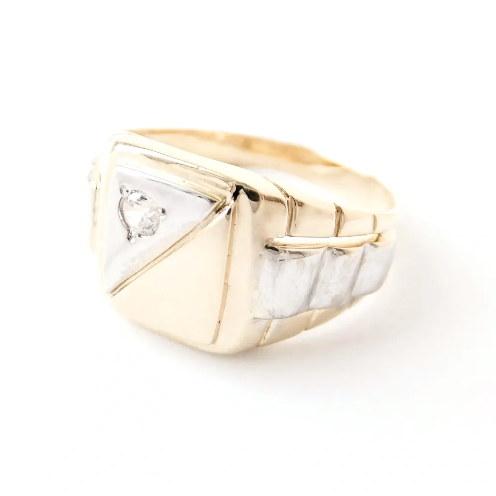 Vkusný zlatý prsten pro pány. Prsten je dekorován čirým zirkonem.