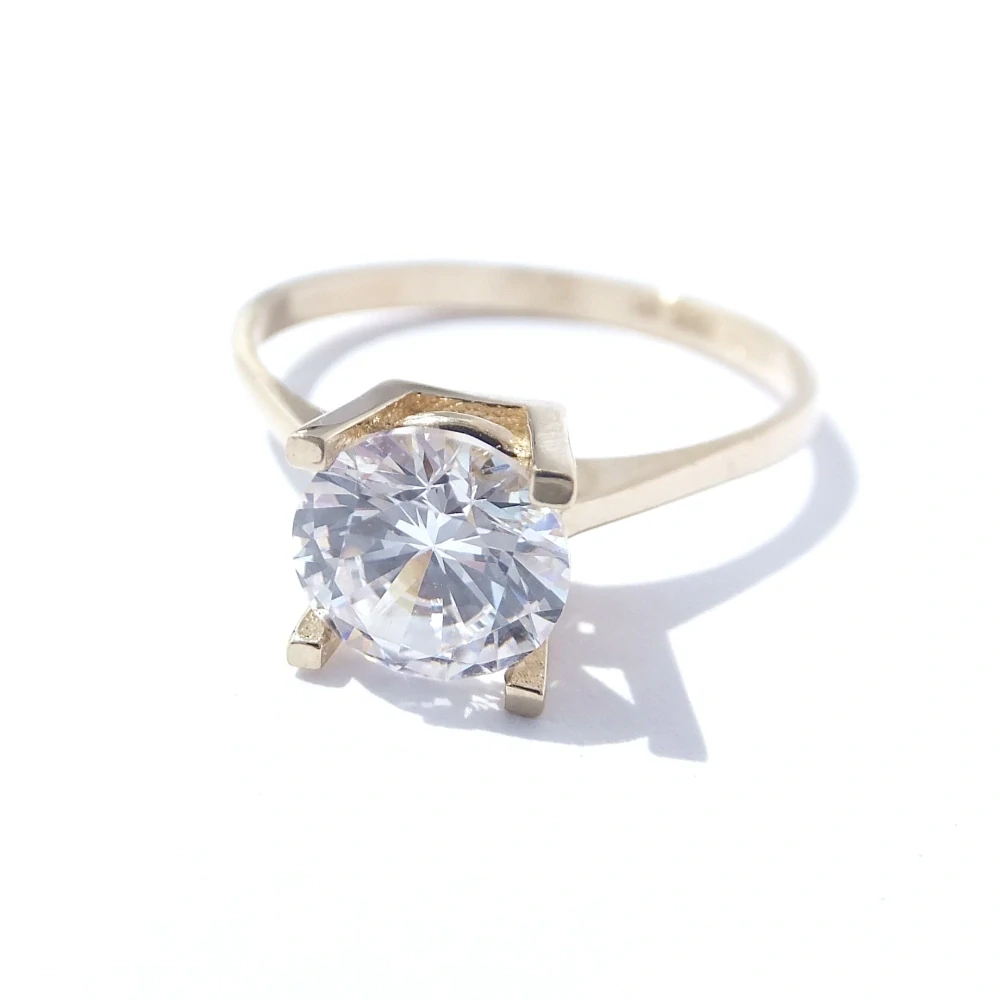 Nádherný zlatý prsten s čirým zirkonem uprostřed.